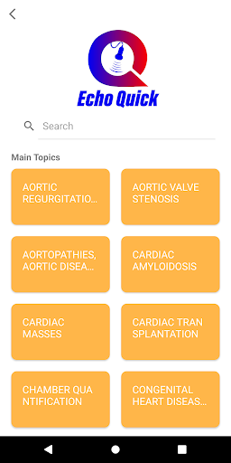 The EchoQuick app is an educational app for people in the medical field, such as cardiologists, physicians in training, ultrasound technicians, and medical students. It is approved by the American Epilepsy Society and does not involve any human subjects research. The app has interactive features that allow users to easily access important topics, search for specific topics, and save them for future reference. It is a free tool for learning and quick review, and can also be used for echo board exam final review. It covers all topics related to echo cardiography, focusing on common questions, quantification, and the most recent guidelines for valvular disease assessment and Doppler Basics.