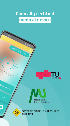 SkinScreener is an Android app developed by dermatologists and biomedical engineers to help detect skin cancer early. It uses a clinically proven neural network to assess the risk of skin cancer in moles, skin spots, and birthmarks. Users take a photo of the skin area, and the app gives a risk assessment using a 3 color code (low, medium, high risk). The app is free to download, and users get a limited number of free scans. Additional scans are available through paid subscriptions or as individual purchases. SkinScreener is registered as a Class I medical device and is intended for adult users with Fitzpatrick skin types I to IV. The app does not replace a physical examination by a doctor and users are advised to seek professional medical advice.